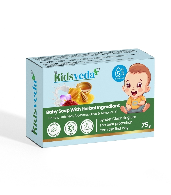 Kidsveda Baby Soap with Herbal Ingredients – pH 5.5 Syndet Bar (75g)