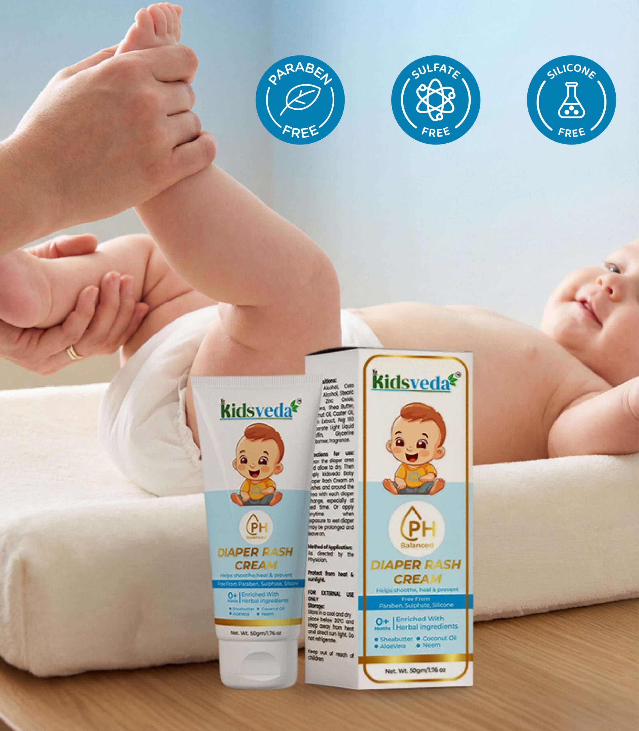 Kidsveda Herbal Diaper Rash Cream – Soothe & Protect (50g)